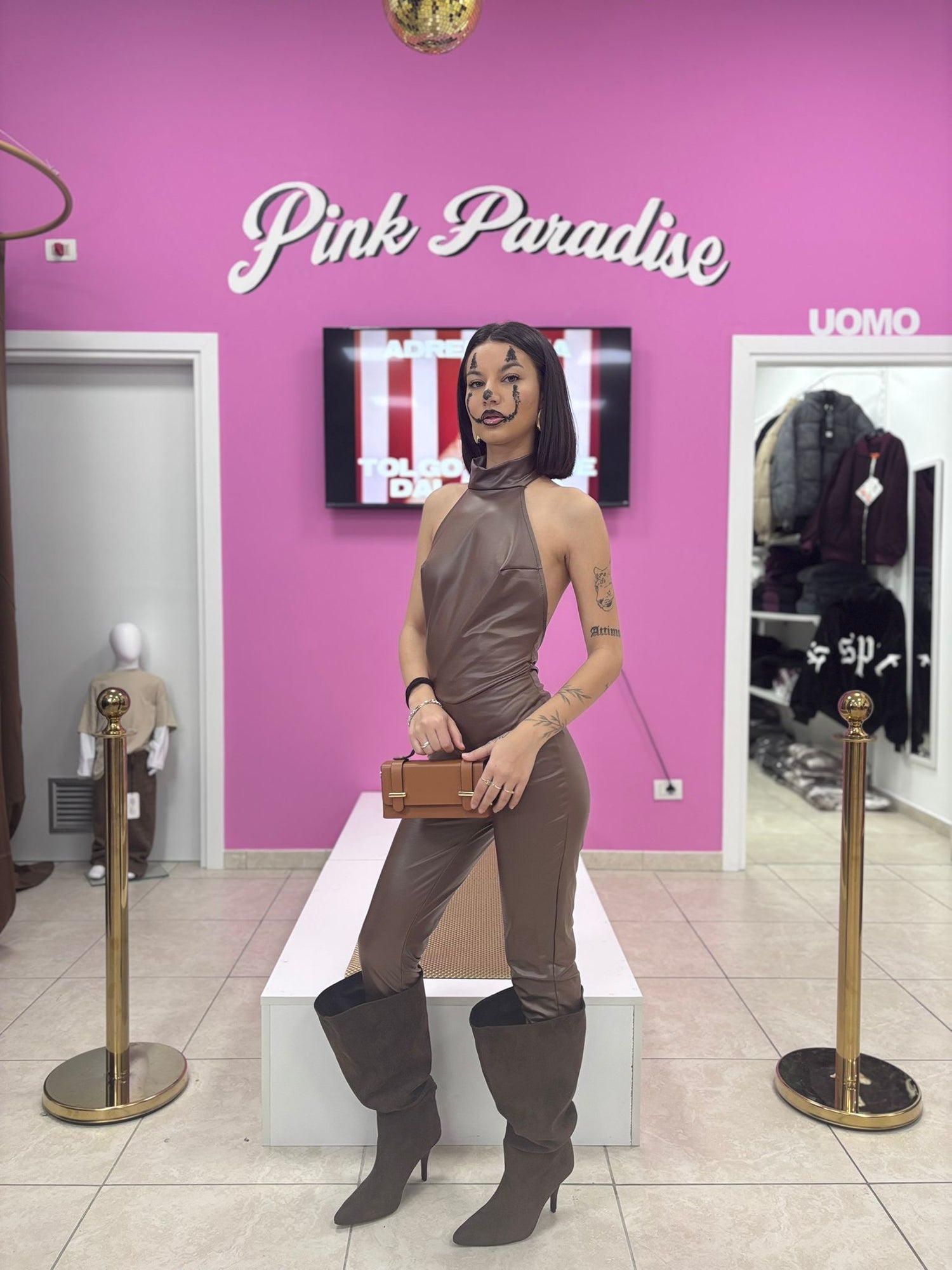 Tutina romper aderente ecopelle bordeaux